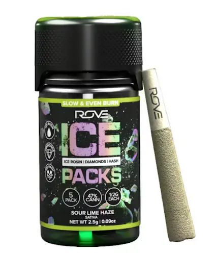 Rove Ice Packs, the world’s first triple-infused preroll. Made with premium-grade flower fully-infused with THCA diamonds and solventless ice hash rosin, they're expertly rolled, then coated with more ice hash. Super smooth and ultra potent, Rove Ice Packs test at over 50% THC. Welcome to the next evolution of prerolls.